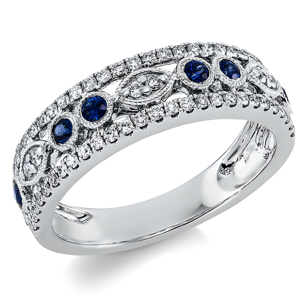 Pagamintas Vokietijoje iš aukštos kokybės brangakmenių. Nepakartojamo grožio žiedas išskirtinio stiliaus, aukštos kokybės, su komforto zona. Žiedas gali būti pagamintas pagal užsakymą: raudono, geltono bei balto aukso, su spalvotais safyrais, arba safyrais vienos spalvos. Safyras yra jėgos, optimizmo ir aktyvumo simbolis. Stebuklinga safyro galia – padeda sumažinti įtampą konfliktų metu ir išspręsti sveikatos problemas. Safyras tinka – Žuvims, Svarstyklėms, Skorpionams, Dvyniams, Mergelėms, Liūtams, Avinams, Vandeniui, Šauliams.