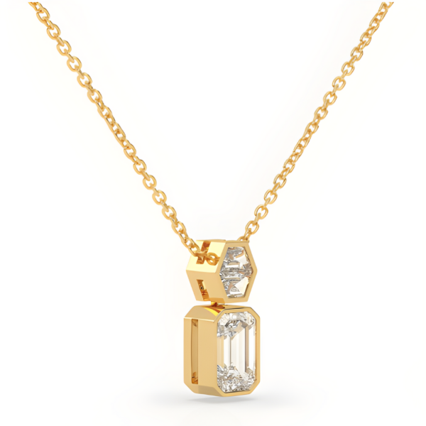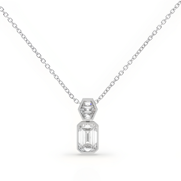 • Deimanto charakteristika: bendras svoris 2.20 ct, 1.00 ct Emerald formos, 1.20 smulkus deimantais, spalva D-E(EW); švarumas VVS