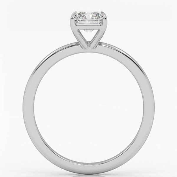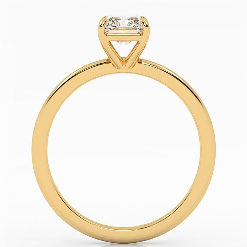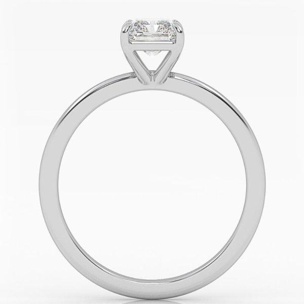 Šis klasikinis sužadėtuvių žiedas išsiskiria savo griežtu elegantiškumu – centre spindi stačiakampio formos deimantu. Minimalistinis, glotnus lankelis leidžia šiam deimantui tapti tikru šio žiedo žvaigždės centru, išlaikant subtilų, bet prabangų įspūdį.