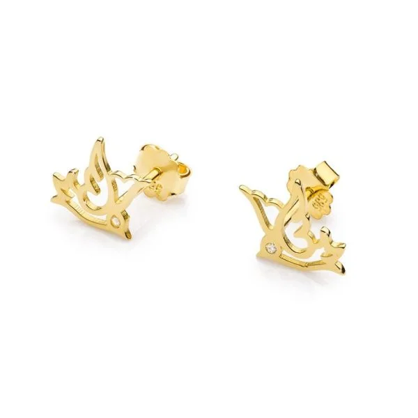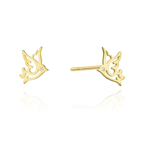 Deimantiniai paukšteliai – geltono aukso auskarai su deimantais (0,03 ct)