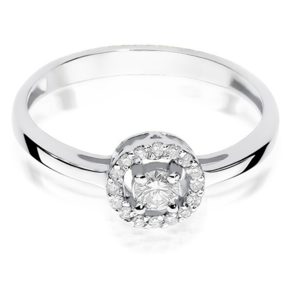 Halo dizaino sužadėtuvių žiedas su užaugintais deimantais 0,20 karato. Deimantai, sudėti kartu į apvalią formą, sukuria vieno didesnio deimanto efektą. Puikiai tinka sužadėtuvėms ir ypatingoms progoms. Maksimalus patogumas.
