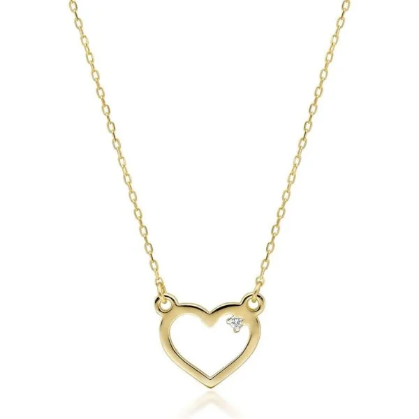 Heart’s Tenderness: yellow gold heart-shaped pendant with diamond and chain