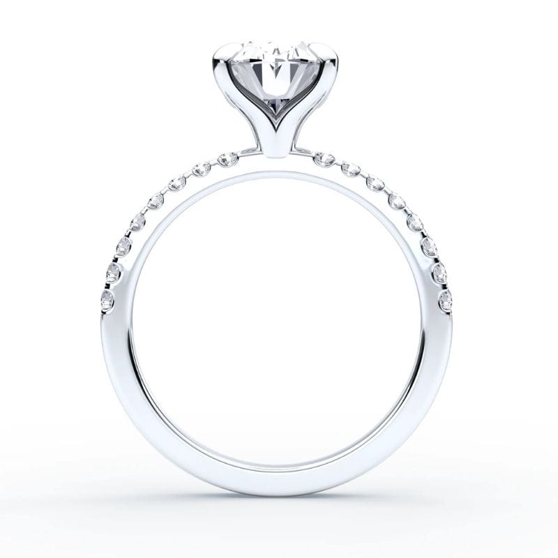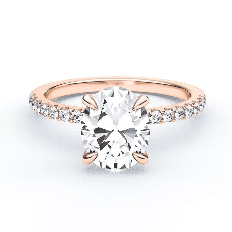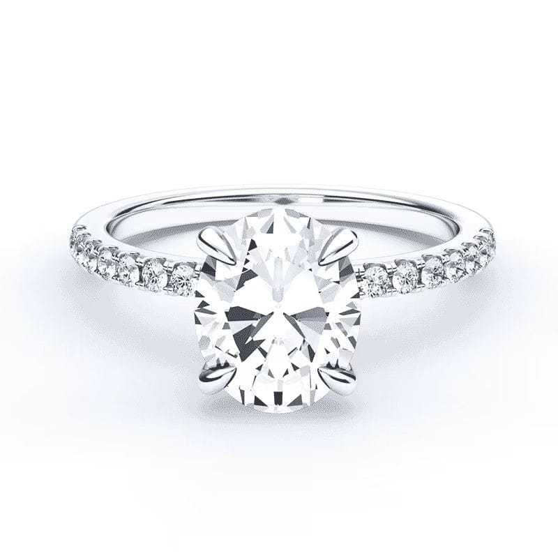 Modernus sužadėtuvių žiedas su deimantais ir Oval pjūvio centru – šviesos bei jausmo derinys išgrynintame dizaine