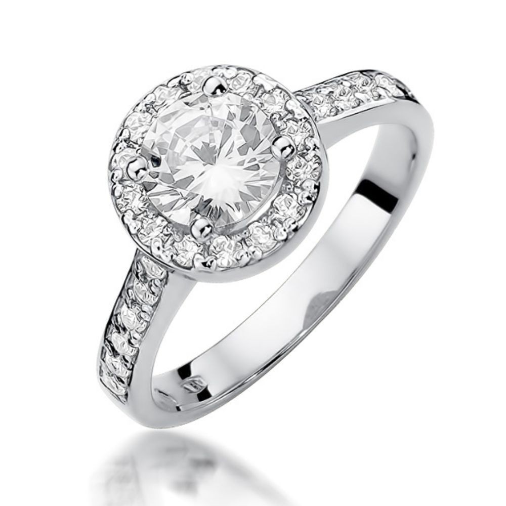 Radiant luxury – halo design white gold ring with diamonds (0.74 ct E/VS2)