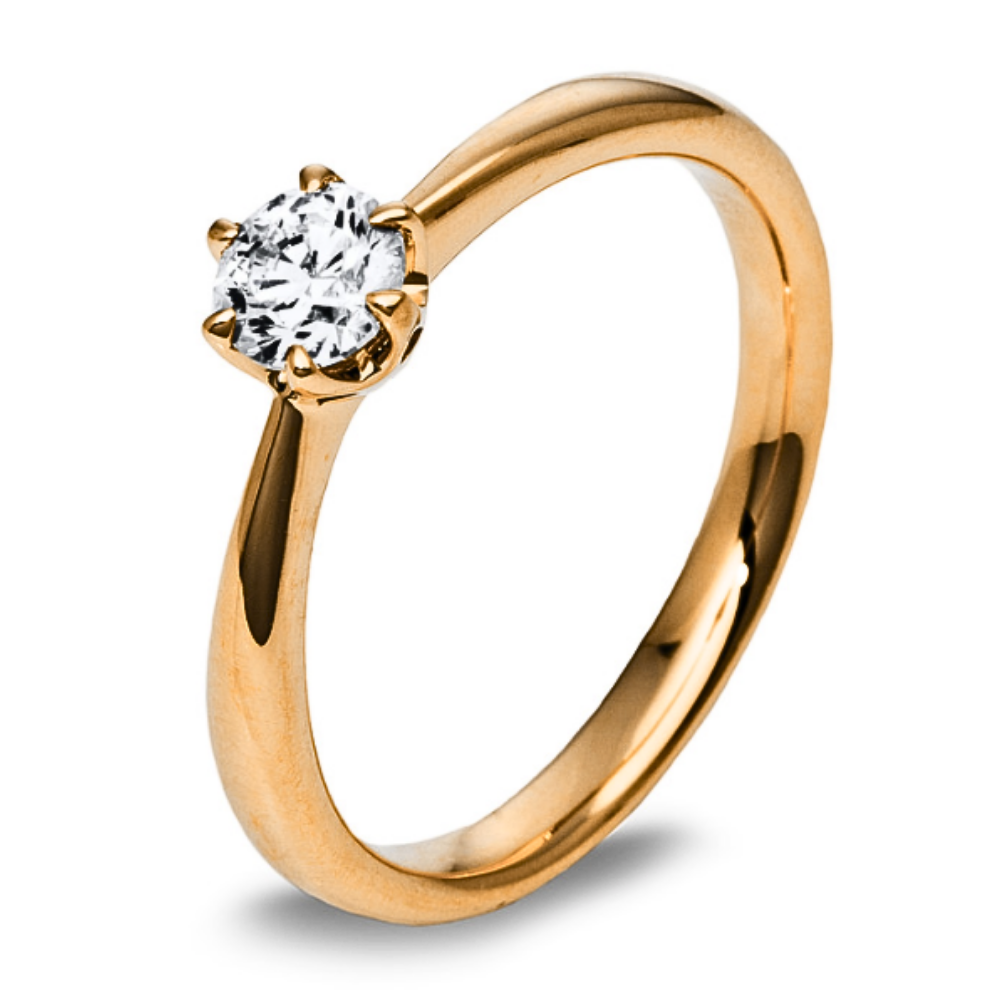 A classic engagement ring is characterized by a clean band and a single diamond or brilliant. Classic rings feature brilliants – round-shaped diamonds with 57 facets. A classic ring design is not only aesthetically clean but also practical: when choosing rings, it is important to consider their design, metal, and practicality.