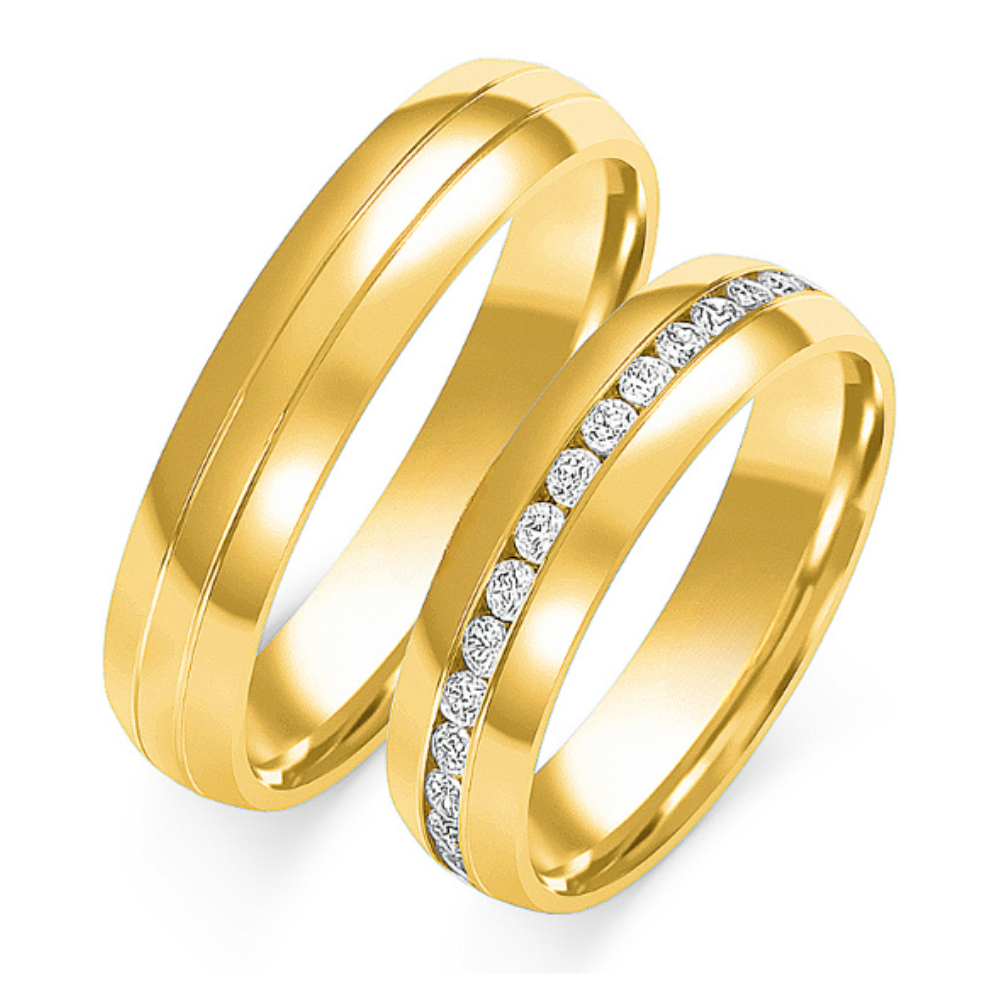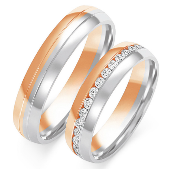 Nepakartojamo grožio vestuviniai žiedai išskirtinio stiliaus, aukštos kokybės, su komforto zona. Puikus pasirinkimas, atspindintis jūsų meilės istoriją. Jų technologija išsiskiria – vestuviniai žiedai gaminami iš grūdinto aukso, kuris atsparus mikro įtrūkimams, neturi sudėtyje nikelio bei mažiau braižosi. Žiedai gali būti pagamintas pagal užsakymą: raudono, geltono bei balto aukso, už papildomą mokestį su kitos aukso spalvos krašteliais, skirtingu žiedo pločių arba su deimantais.