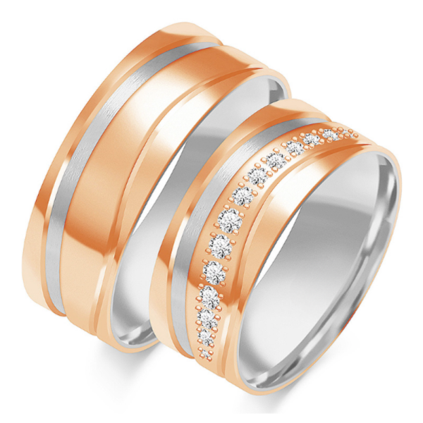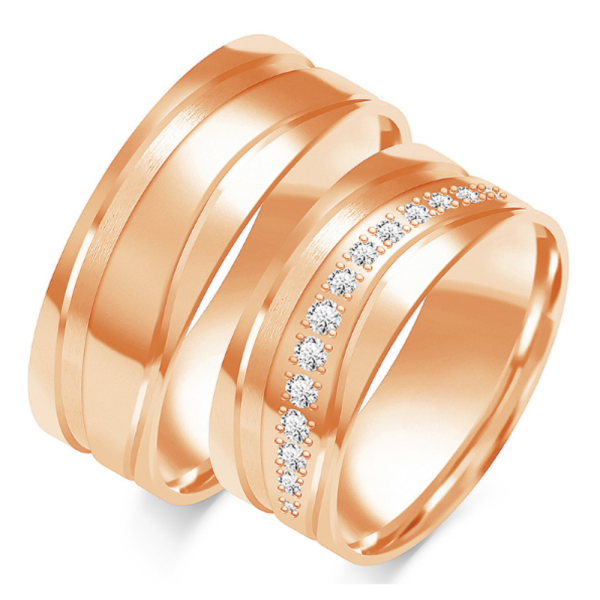 Nepakartojamo grožio vestuviniai žiedai išskirtinio stiliaus, aukštos kokybės, su komforto zona. Puikus pasirinkimas, atspindintis jūsų meilės istoriją. Jų technologija išsiskiria – vestuviniai žiedai gaminami iš grūdinto aukso, kuris atsparus mikro įtrūkimams, neturi sudėtyje nikelio bei mažiau braižosi. Žiedai gali būti pagamintas pagal užsakymą: raudono, geltono bei balto aukso, už papildomą mokestį su kitos aukso spalvos krašteliais, skirtingu žiedo pločių arba su deimantais.