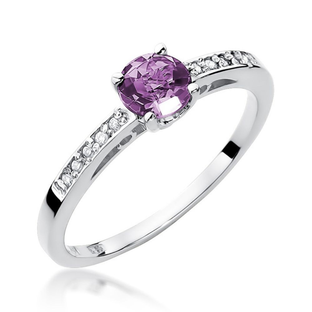Ametistikuninganna – valgest kullast sõrmus ametisti ja teemantidega (0,55 ct)