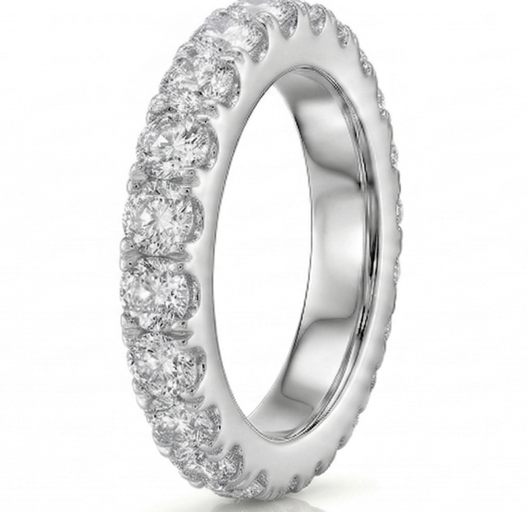 Deimantinė juostelė su deimantais – žiedas su 4.50 karato deimantais. Nesvarbu, ar jau turite sužadėtuvių žiedą, ar vestuvinį žiedą – juos lengvai derinsite su deimantine juostele, kuri gali būti nešiojama ir kaip papildomas, ir kaip vienintelis žiedas.