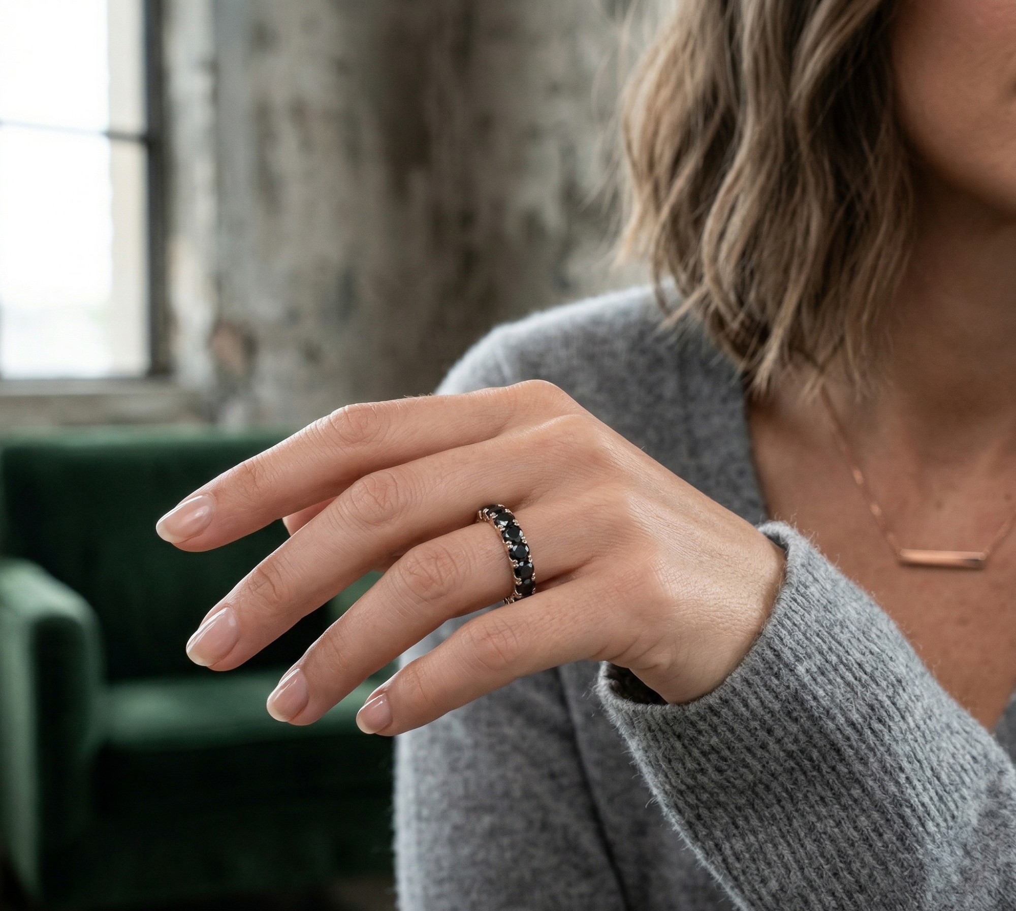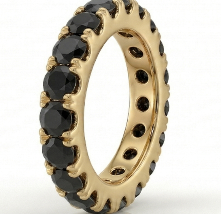 Deimantinė juostelė su juodais deimantais – žiedas su 7.00 karato deimantais. Nesvarbu, ar jau turite sužadėtuvių žiedą, ar vestuvinį žiedą – juos lengvai derinsite su deimantine juostele, kuri gali būti nešiojama ir kaip papildomas, ir kaip vienintelis žiedas.