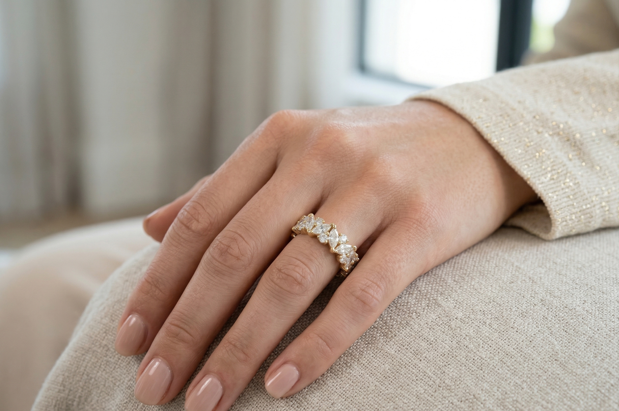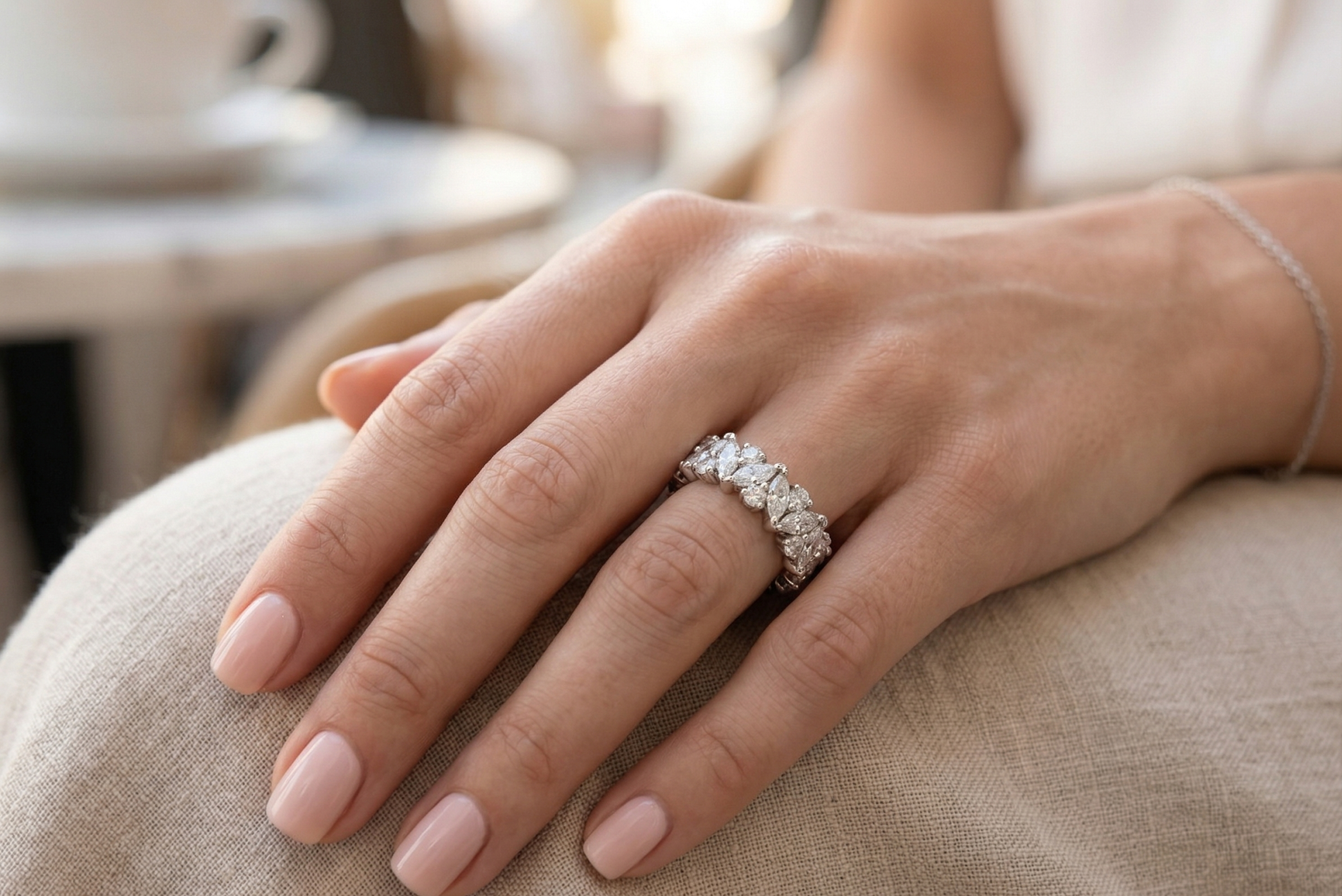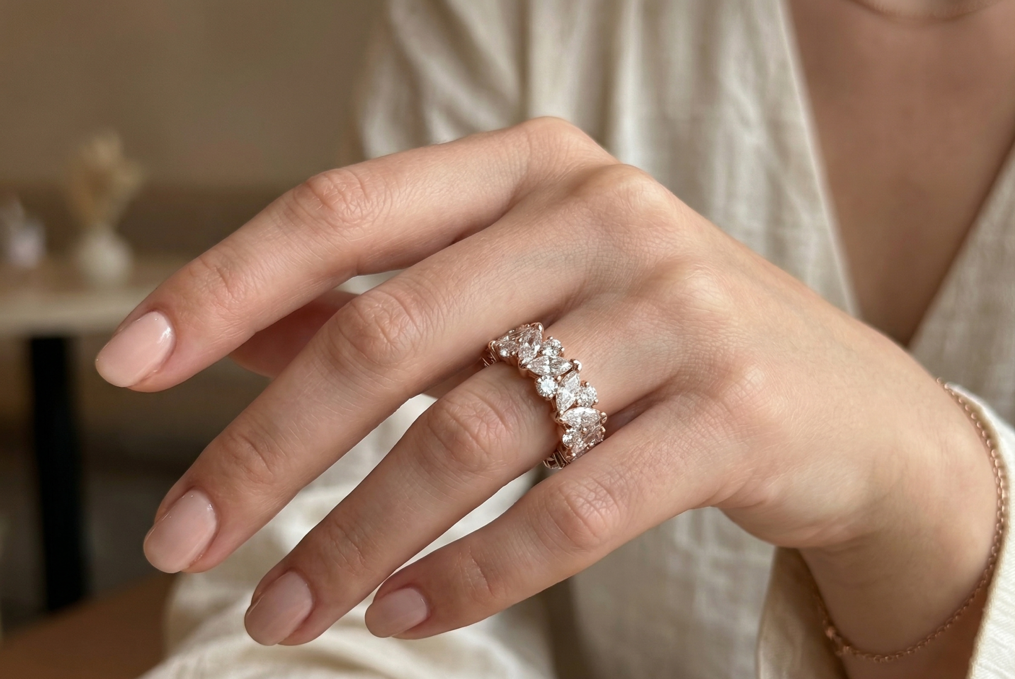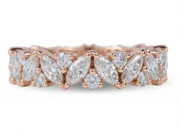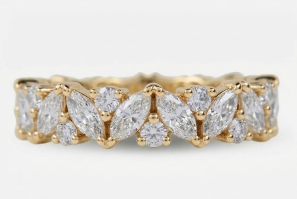 Išskirtinė deimantinė juostelė su 33 markizės ir apvalios formos laboratoriniais deimantais – žiedas su 10.69 karato deimantais. Aukščiausia žiedo kokybė iš Lietuvos. Maksimalus patogumas kasdieniam nešiojimui. Tai išskirtinis pasirinkimas tiems, kurie vertina aukštą kokybę. Pagaminta Lietuvoje – pagal aukščiausius standartus.