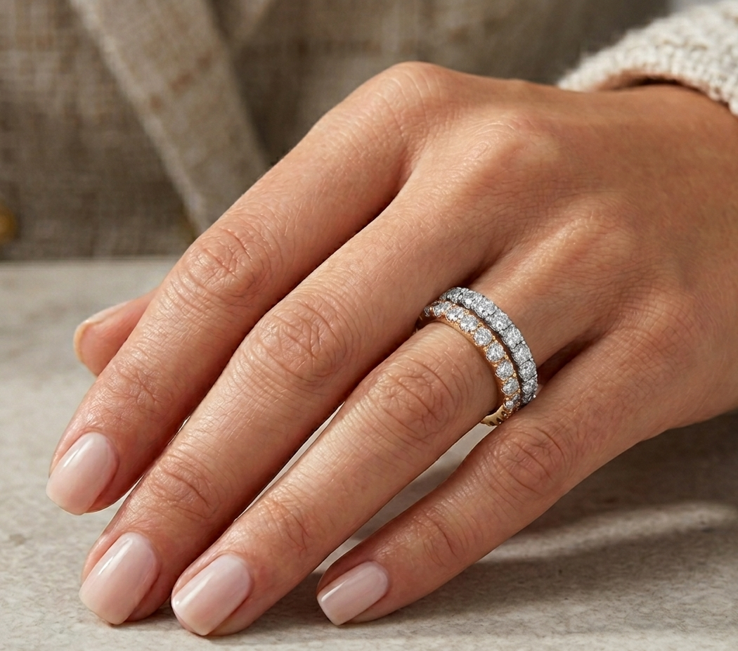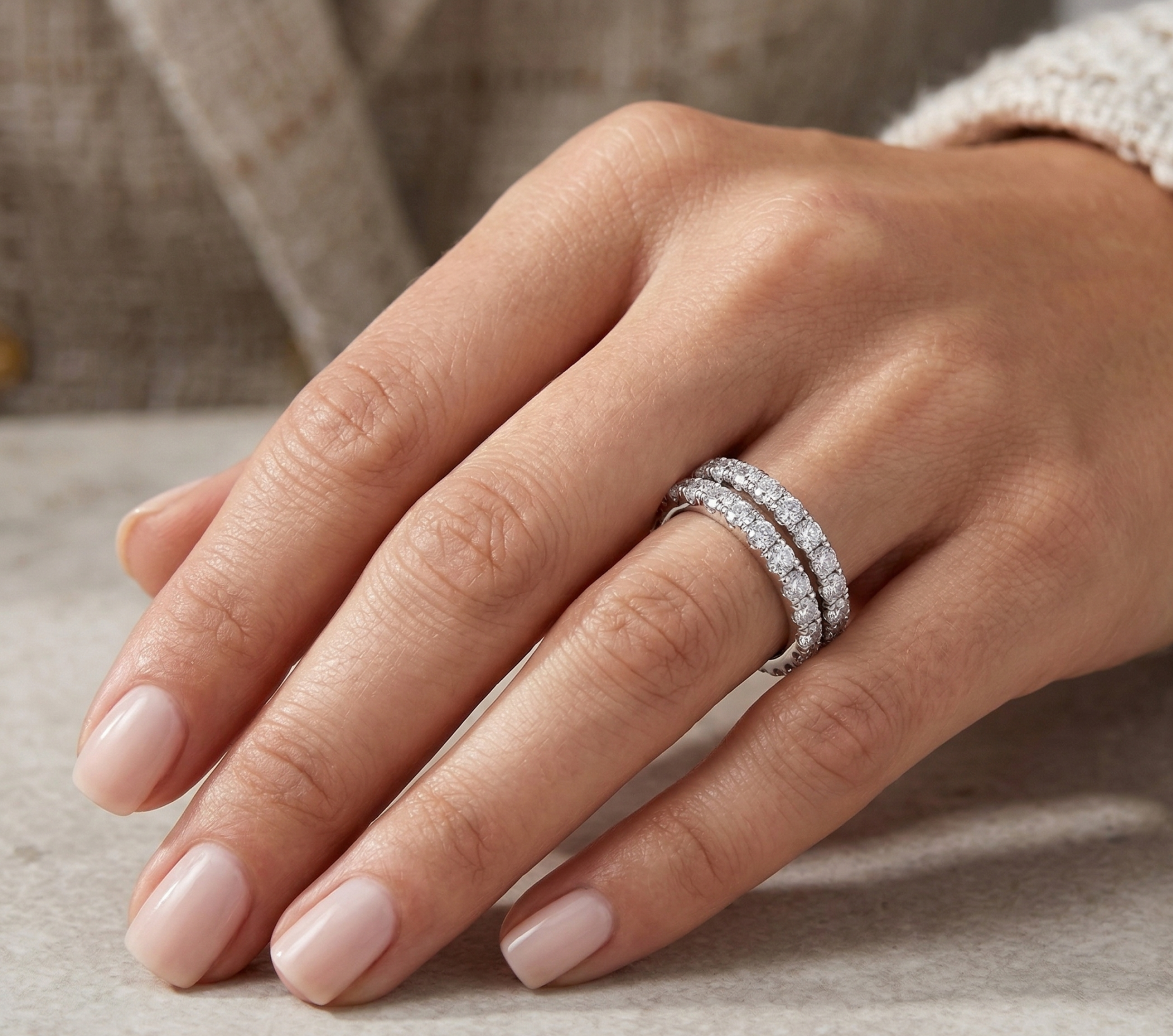 Deimantinė juostelė su laboratoriniais deimantais – žiedas su 1.40 karato deimantais. Nesvarbu, ar jau turite sužadėtuvių žiedą, ar vestuvinį žiedą – juos lengvai derinsite su deimantine juostele, kuri gali būti nešiojama ir kaip papildomas, ir kaip vienintelis žiedas.