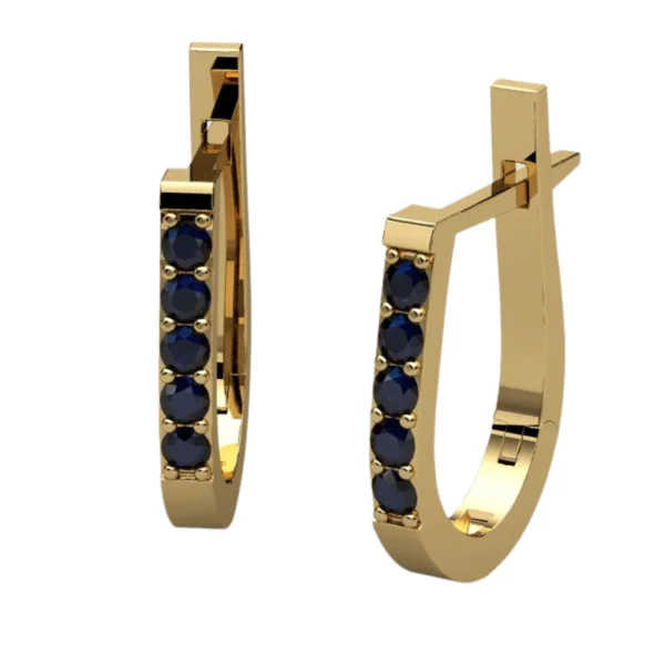 Unikalus rankų darbo aukso auskarai su mėlynais safyrais ir anglišku užsiegimu. Klasikinis auskarų transformatorių dizainas leidžia nešioti tik auskarus arba pridėti specialiai pagamintus pakabukus su brangakmeniais. Tinka kasdieniam nešiojimui arba ypatingoms progoms.