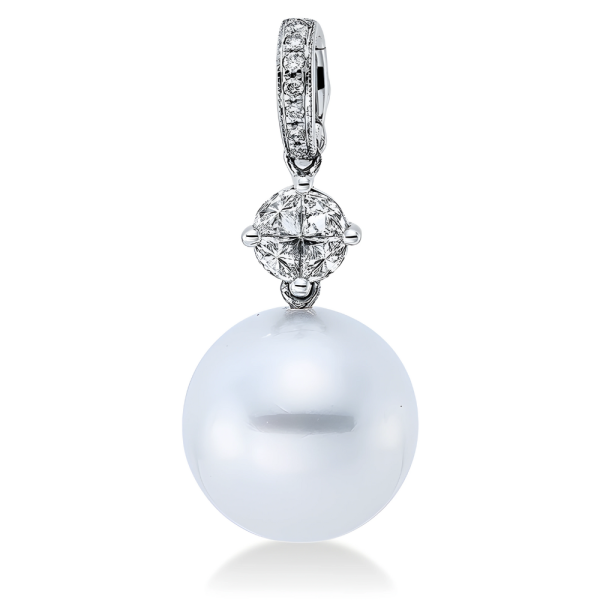 Modernne kuldripats merepärli ja teemantidega (South Sea, 12 mm, 0.36 ct)
