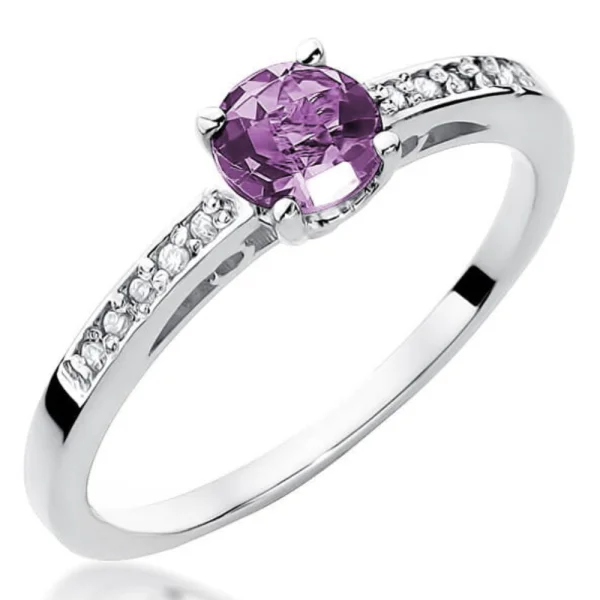 Moodne ametisti ja teemantidega kihlasormus – ümmargune ametist (0.55 ct)