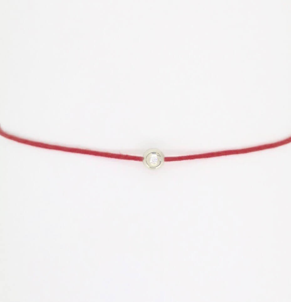 Punase niidiga käevõru valge kulla ja muljetavaldava teemandiga – stiilne kombinatsioon valge värvi, luksuse ja sära vahel.