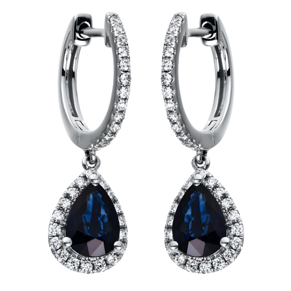 Safyrai – auskarai su safyrais lašo formos ir deimantais (2.13 ct)