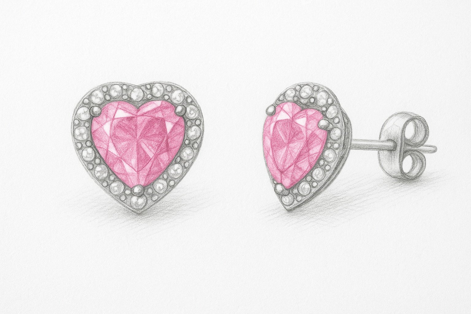Projektuojant auskarus vinukus su rožiniais turmalinais, juvelyras pirmiausia įvertina paties akmens savybes – spalvos intensyvumą, skaidrumą, širdelės formos proporcijas ir šviesos žaismą. Būtent pagal konkretų turmalino akmenį kuriamas visas dizainas: auskarų dydis, karūnėlės aukštis, halo deimantų išdėstymas ir bendras vizualinis balansas. Kiekvieni auskarai reikalauja itin kruopštaus ir profesionalaus darbo, kad būtų pasiektas tobulas estetikos, patogumo ir ilgaamžiškumo derinys.