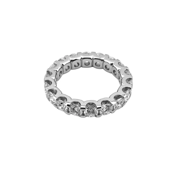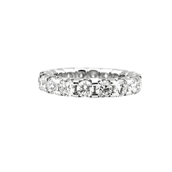 585 prabos auksinis žiedas, kuriame išdėlioti 18 deimantai, kurių bendras svoris apie 3,60 ct (spalva -RW-W, švarumas VS-SI).