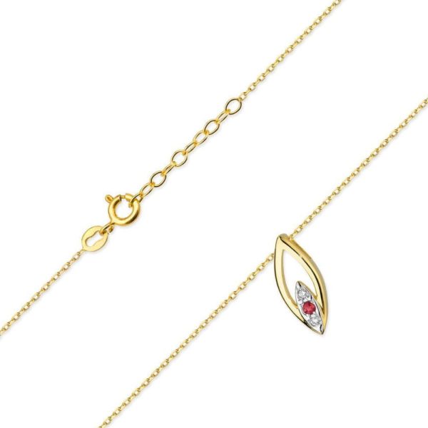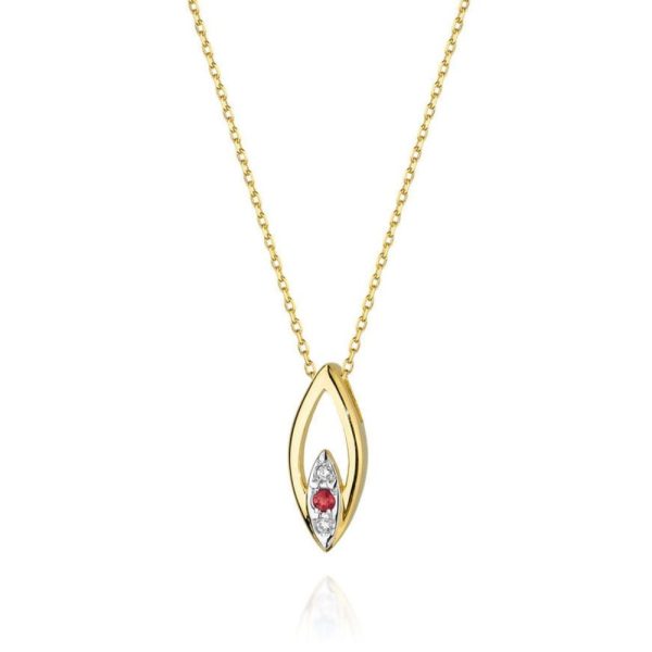 Elegantiška geltono aukso grandinėlė ir pakabukas su rubinu ir spindinčiais deimantais – subtilus pasirinkimas išskirtinai grožio derinyje. Tinkantis tiek kasdienai, tiek ypatingoms progoms