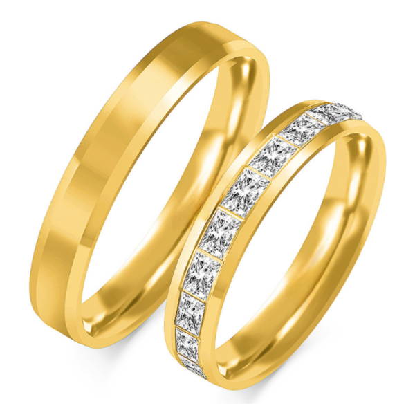 Nepakartojamo grožio vestuviniai žiedai išskirtinio dizaino, aukštos kokybės, su komforto zona. Puikus pasirinkimas, atspindintis jūsų meilės istoriją. Jų technologija išsiskiria – vestuviniai žiedai gaminami iš grūdinto aukso, kuris atsparus mikro įtrūkimams, neturi sudėtyje nikelio bei mažiau braižosi. Žiedai gali būti pagamintas pagal užsakymą: raudono, geltono bei balto aukso, už papildomą mokestį su kitos aukso spalvos krašteliais, skirtingu žiedo pločių arba su deimantais.