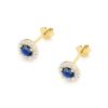 Klasikinio dizaino geltono aukso auskarai su safyrais ir deimantais.