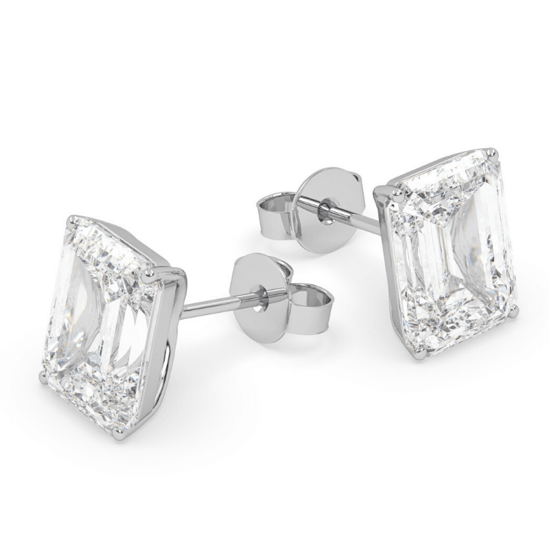 Klasikiniai auskarai su deimantais – Emerald pjūvio akmenys, spindintys bet kokiame įvaizdyje.
