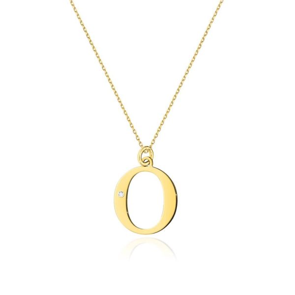 Geltono aukso grandinėlė su auksiniu pakabuku raide O papuoštu tikru deimantu. Išskirtinė dovana ypatingoms progoms.