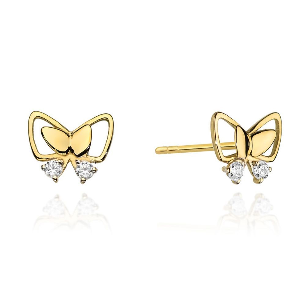 Elegantiški geltono aukso auskarai su spindinčiais deimantais. Išskirtinis drugelio formos dizainas su deimantais. Tinka kasdien ir ypatingoms progoms, pridėdant elegancijos ir išskirtinumo jūsų stiliui.