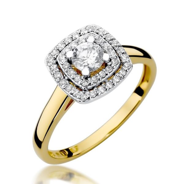 Dzeltenā zelta ekskluzīva halo dizaina gredzens ar iespaidīgu kronīti, kas grezni rotāts ar dimantiem. 0,30 ct galvenais dimants ir ieskauts mirdzošos mazos dimantos, kas burvīgi spīd kvadrātveida kronītī. Moderna stīpiņa papildina šī gredzena dizainu. Šis gredzens ne tikai lieliski piemērots saderināšanās un īpašiem gadījumiem, bet arī atspoguļo jūsu unikālo gaumi un stilu. Sāciet savu luksusa un elegances mirkli ar šo izsmalcināto gredzenu.
