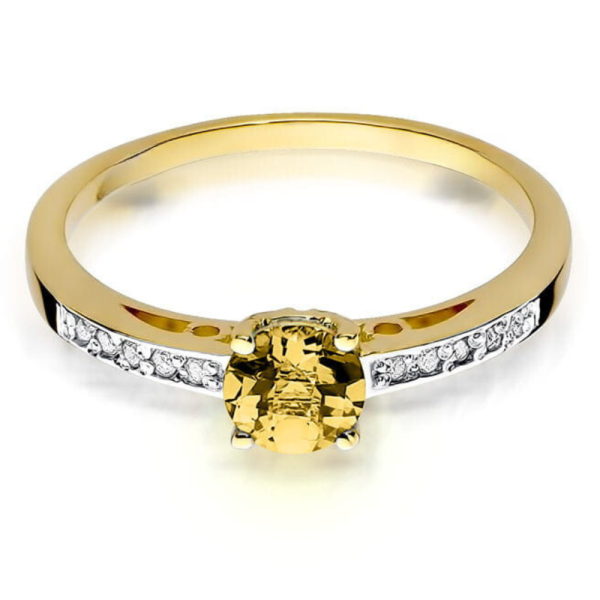 Sužadėtuvių žiedas su citrinu ir deimantais – Apvalus citrinas (0.55 ct)