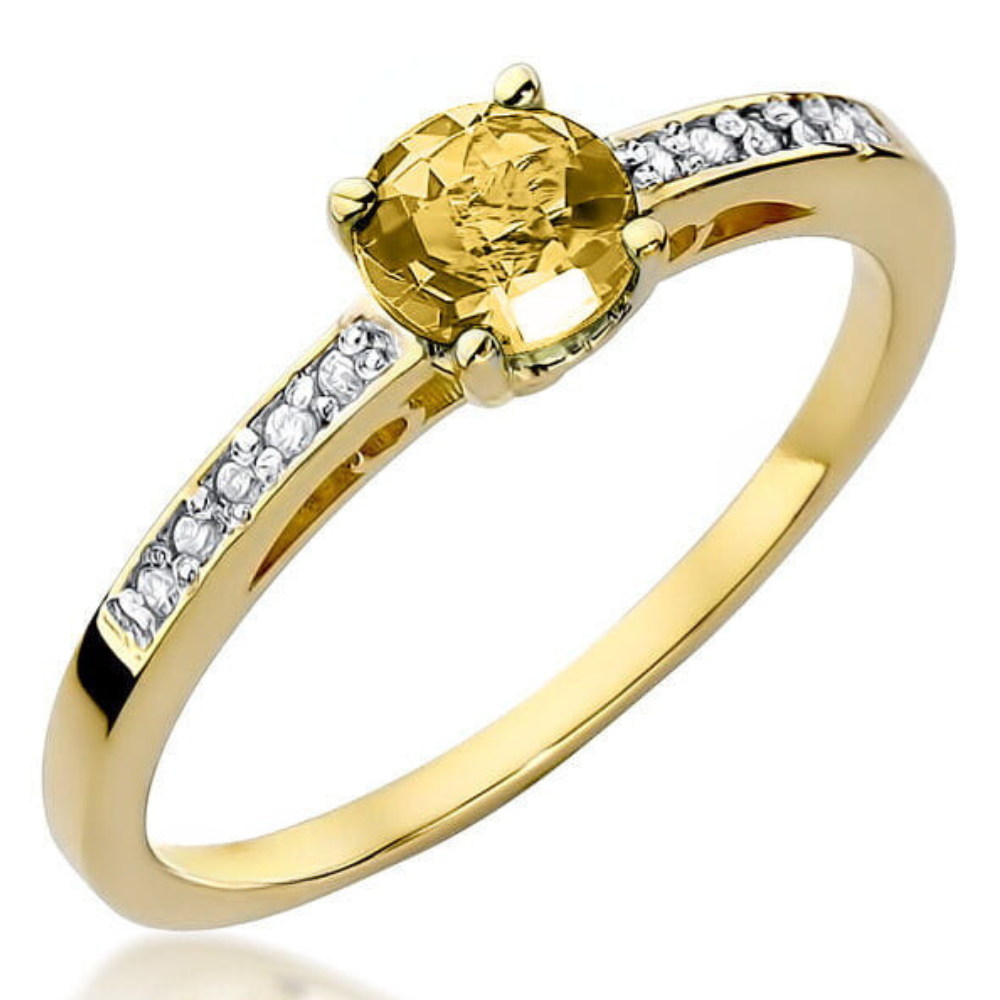 Sužadėtuvių žiedas su citrinu ir deimantais – Apvalus citrinas (0.55 ct)