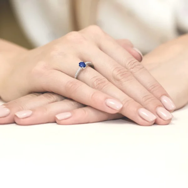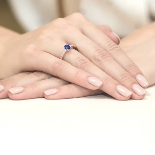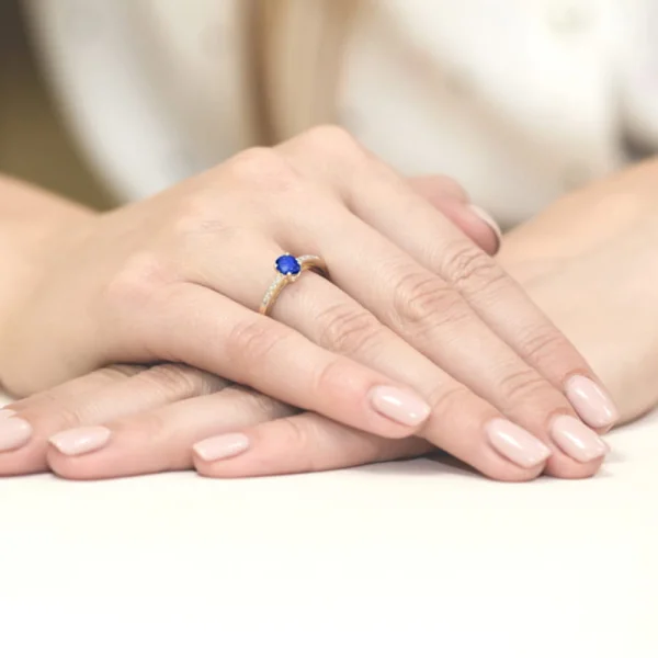 Pagamintas Lietuvoje. Nepakartojamo grožio žiedas išskirtinio stiliaus, aukštos kokybės. Žiedas gali būti pagamintas pagal užsakymą: raudono, geltono bei balto aukso. Safyras yra jėgos, optimizmo ir aktyvumo simbolis. Stebuklinga safyro galia – padeda sumažinti įtampą konfliktų metu ir išspręsti sveikatos problemas. Safyras tinka – Žuvims, Svarstyklėms, Skorpionams, Dvyniams, Mergelėms, Liūtams, Avinams, Jaučiams, Vandeniui, Šauliams.