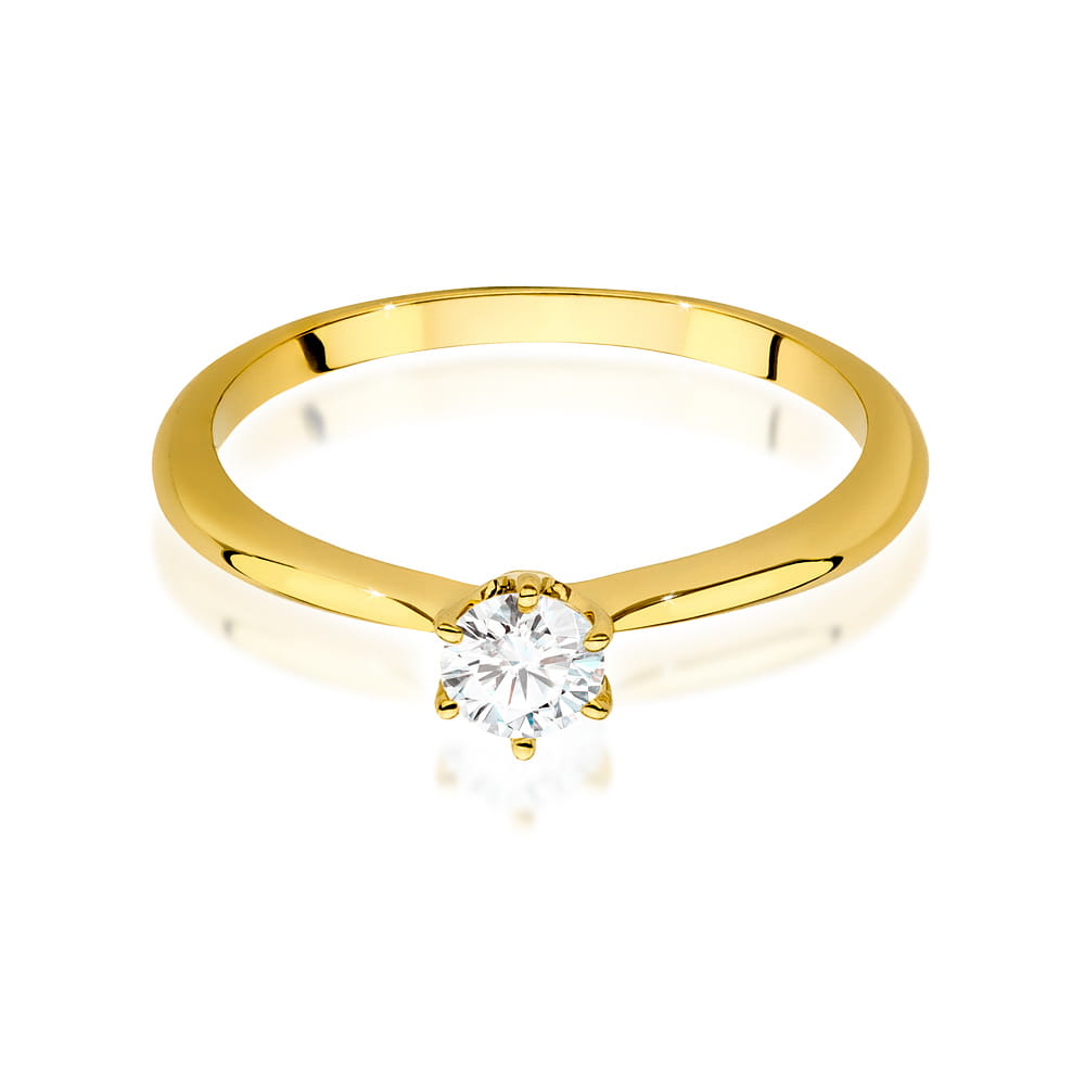 Sužadėtuvių žiedas su užaugintu deimantu, įtvirtintu šešių kojelių karūnėlėje, iš geltono aukso. Klasikinis siluetas, kuris simbolizuoja meilės stiprybę ir tyrumą.
