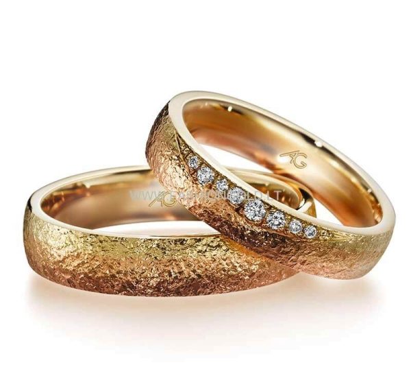 Vokietijos kompanijos „Gerstner“ kurtas žiedas yra iš dviejų aukso spalvų – geltonos plonesnės juostelės viršuje ir rausvo aukso. Žiedo plotis – 5 milimetrai. Galima pasirinkti metalų prabą.