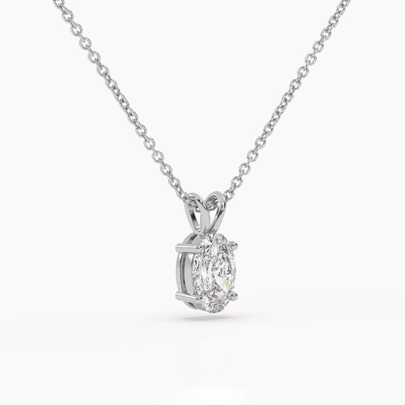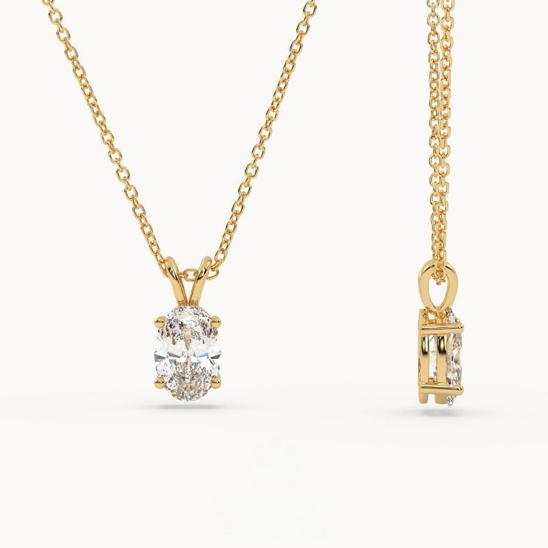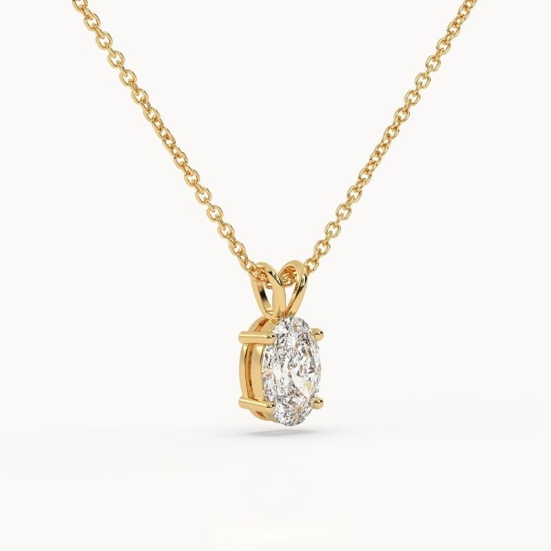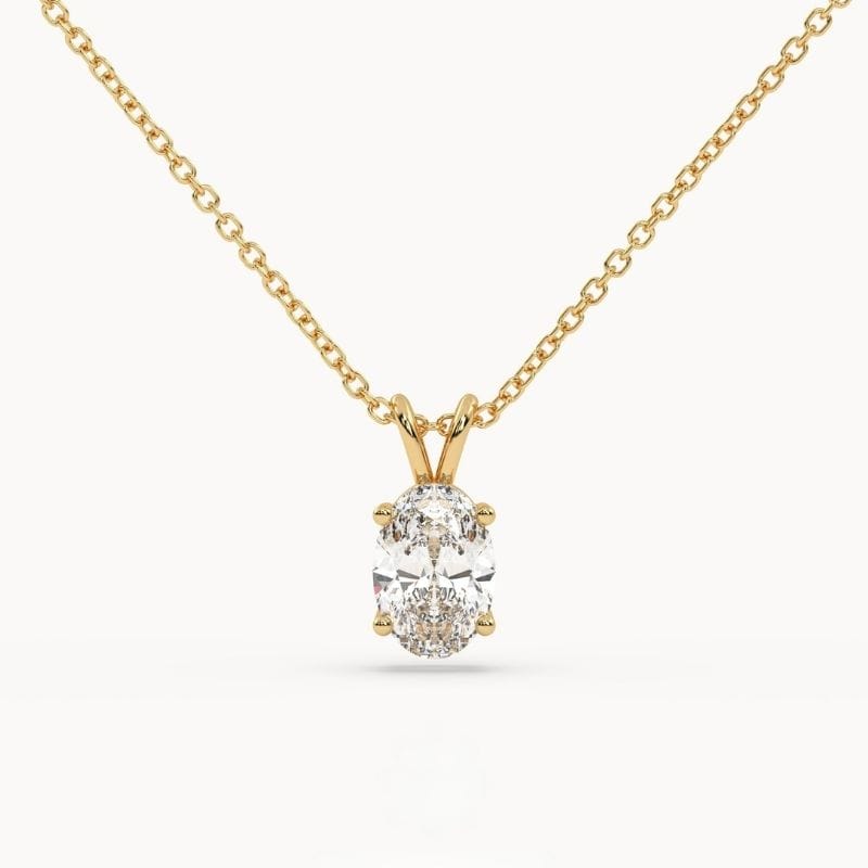 Pakabukas su deimantu – tarsi sustabdytas judesio momentas. Ovalo formos deimantas simbolizuoja tęstinumą ir ryšį, primindamas, kad grožis slypi pusiausvyroje. Jo pailga forma sukuria švelnų šviesos srautą, kuris kinta priklausomai nuo kampo ir judesio, todėl šis papuošalas niekada neatrodo vienodai. Jame dera natūralus lengvumas, klasikinė simetrija ir vos juntamas modernumo atspalvis – tai ramus, bet užtikrintas spindesys, kalbantis tyliau nei žodžiai.