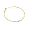 Auksinė apyrankė su trim deimantais – trys blizgantys akcentai deimantai ant dvigubos grandinėlės iš geltono aukso. Išskirtinė dovana ypatingoms progoms, kuri privers ją jausmų spindesį!