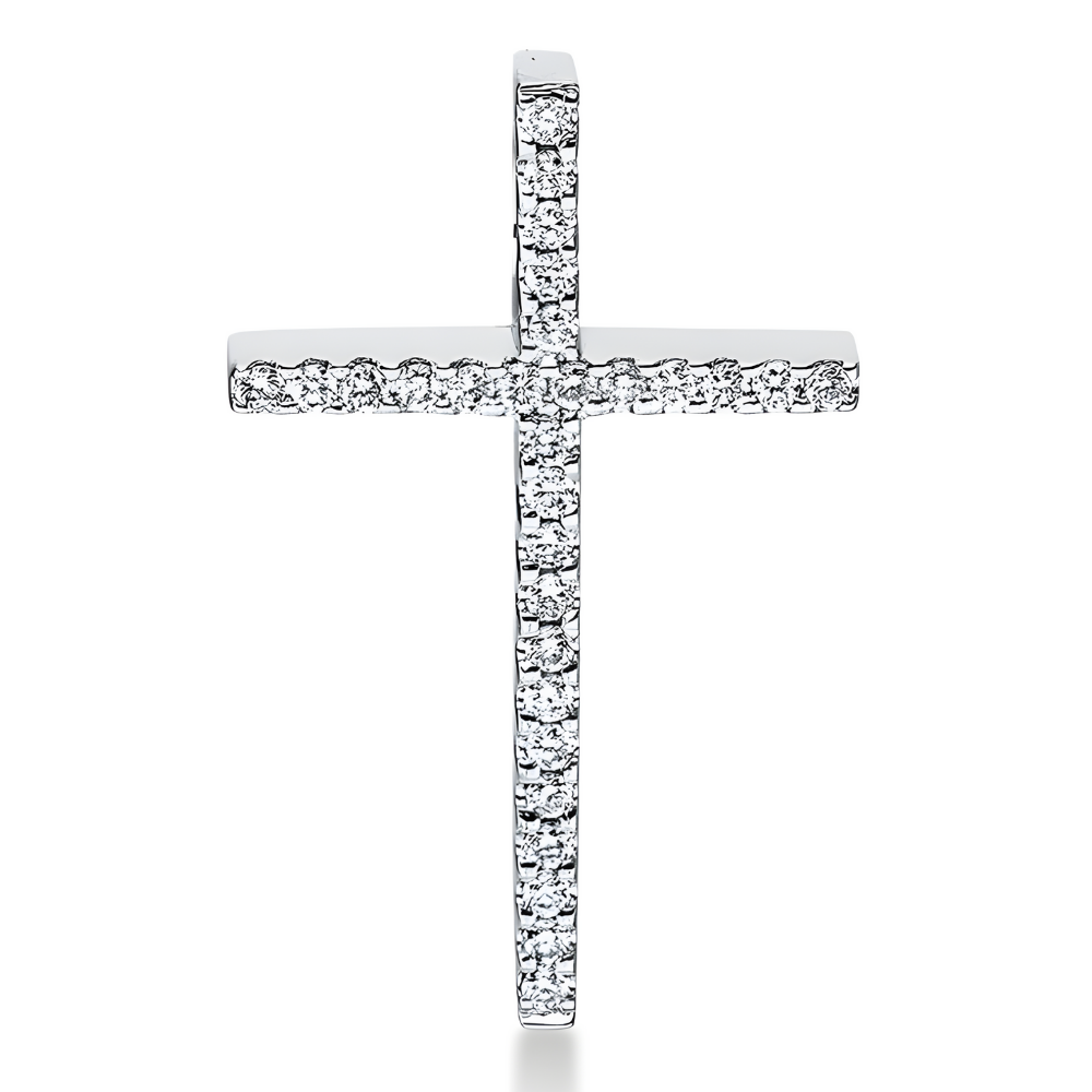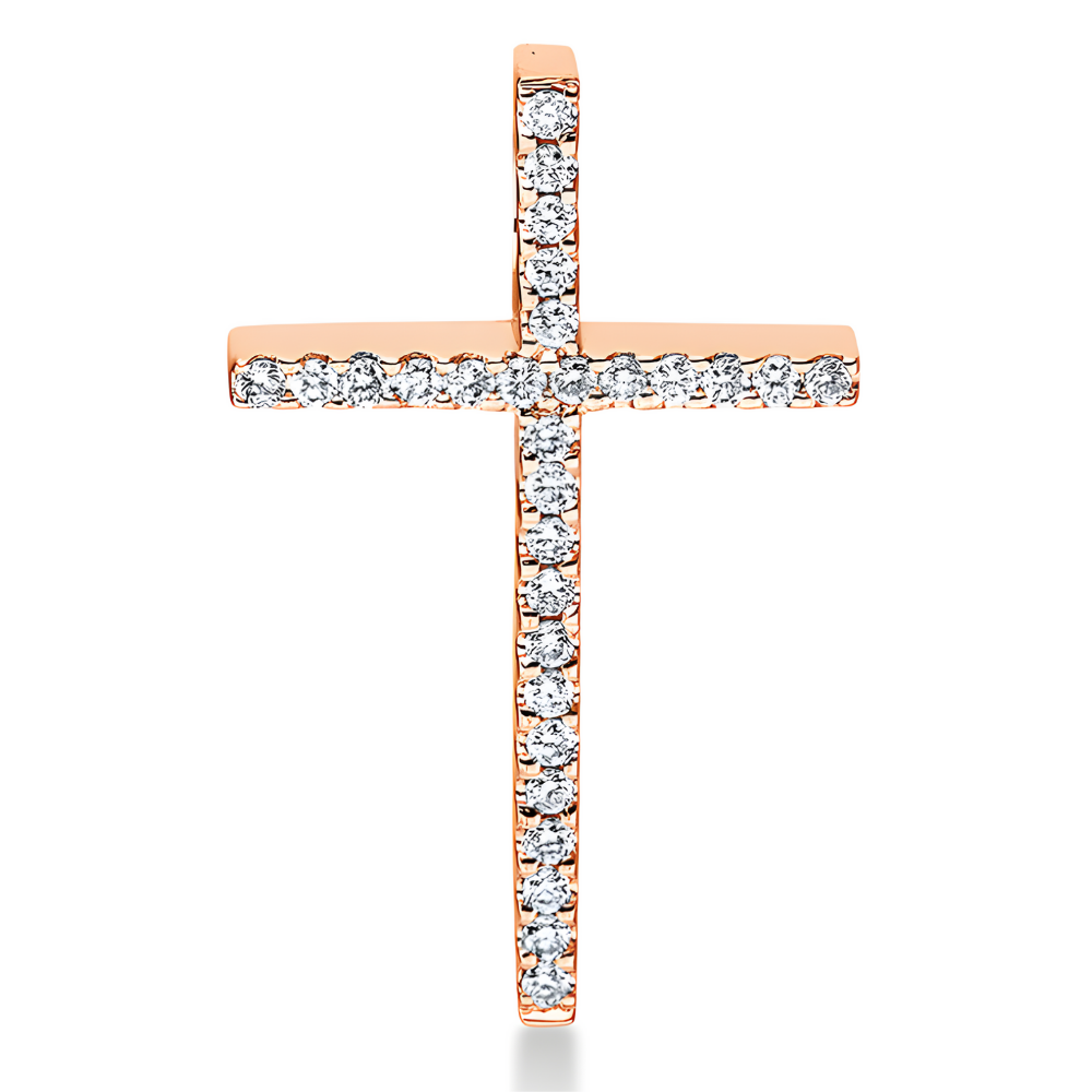 Auksinis kryželis su deimantais, kuriu svoris 0.14 karato. Puiki dovana kasdienai ir ypatingoms progoms, išskirtinam stiliui.
