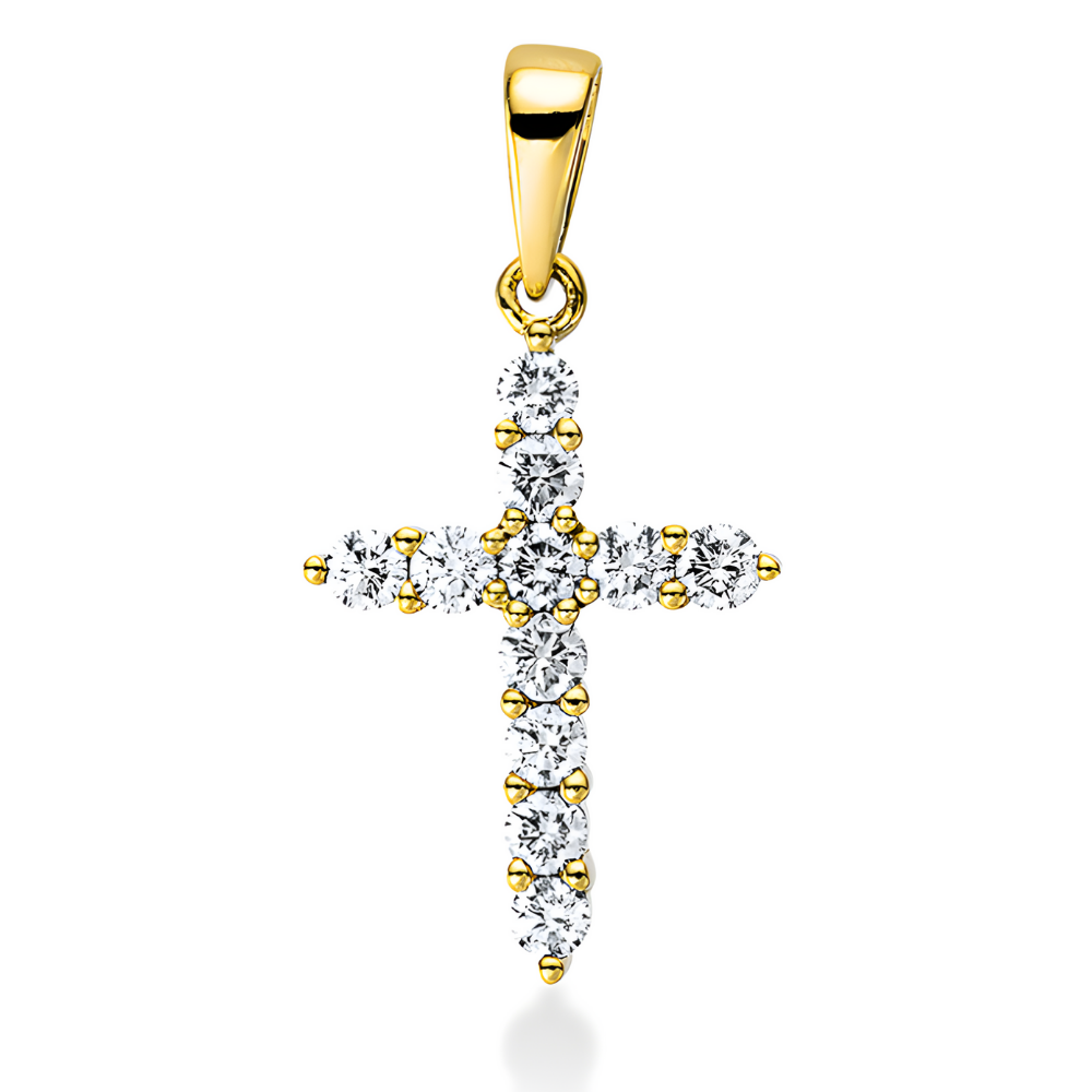 Auksinis kryželis su deimantais, kuriu svoris 0.23 karato. Puiki dovana kasdienai ir ypatingoms progoms, išskirtinam stiliui.