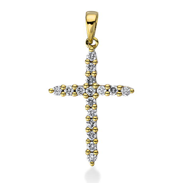 Auksinis kryželis su deimantais, kuriu svoris 0.26 karato. Puiki dovana kasdienai ir ypatingoms progoms, išskirtinam stiliui.