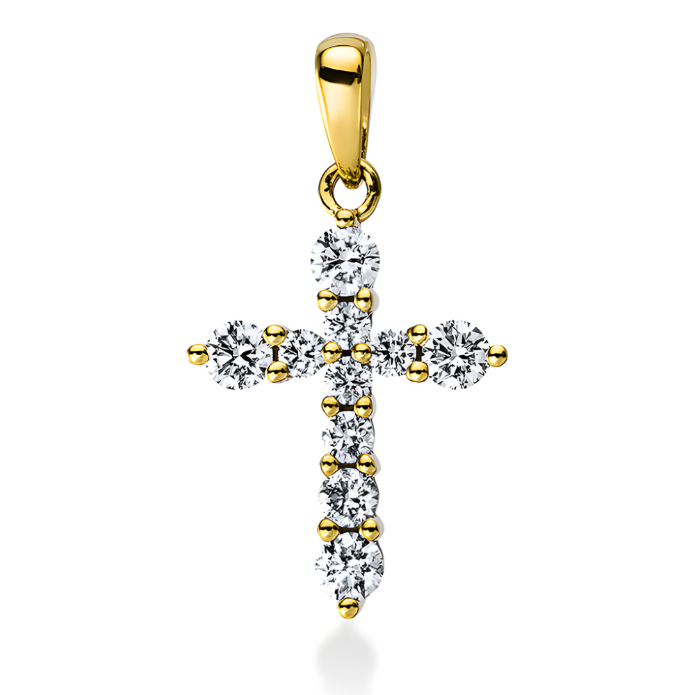 Auksinis kryželis su deimantais, kuriu svoris 0.30 karato. Puiki dovana kasdienai ir ypatingoms progoms, išskirtinam stiliui.