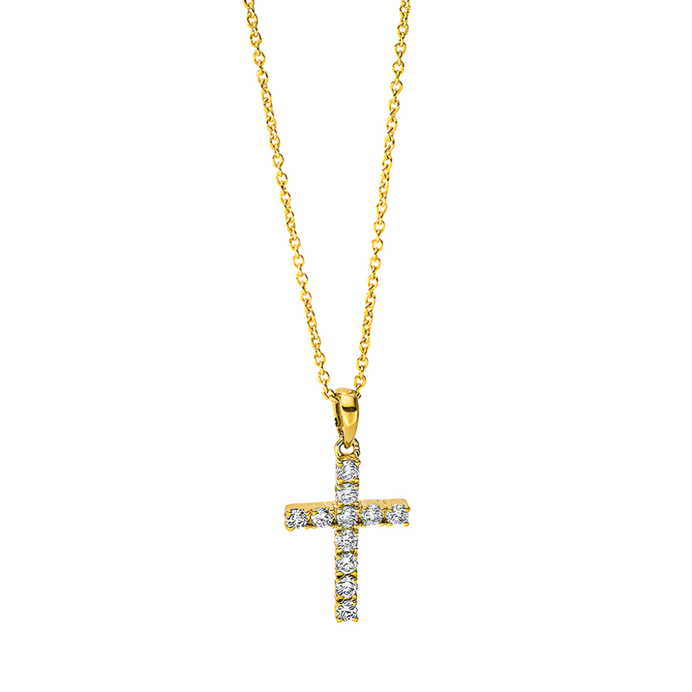 Auksinis kryželis su deimantais ir grandinėlė (0.20 ct)