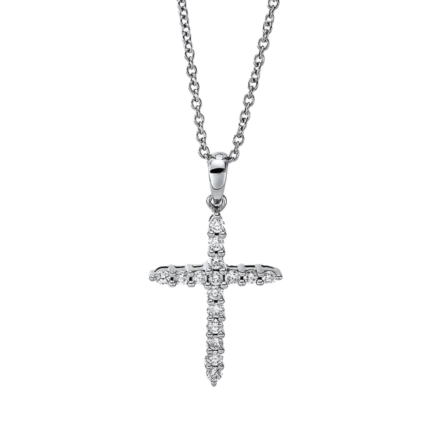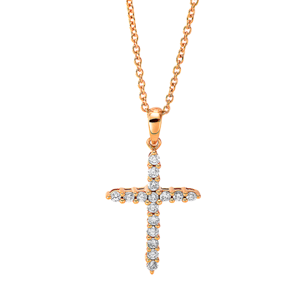 Auksinis kryželis su deimantais ir grandinėlė (0.25 ct)