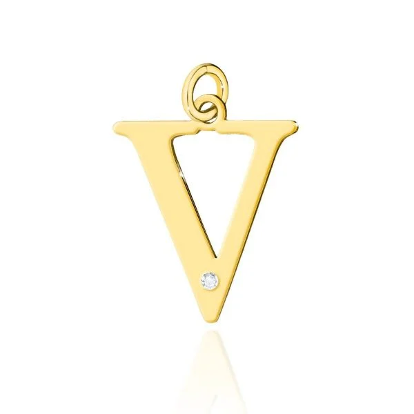 Geltono aukso auksinis pakabukas raidė, papuoštas tikru deimantu.