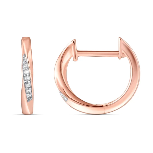 Modernaus dizaino auskarai rinkutės su deimantais, kuriu bendras svoris 0,04 karato. Tinka kasdienai ir ypatingoms progoms, išskirtinam stiliui.
