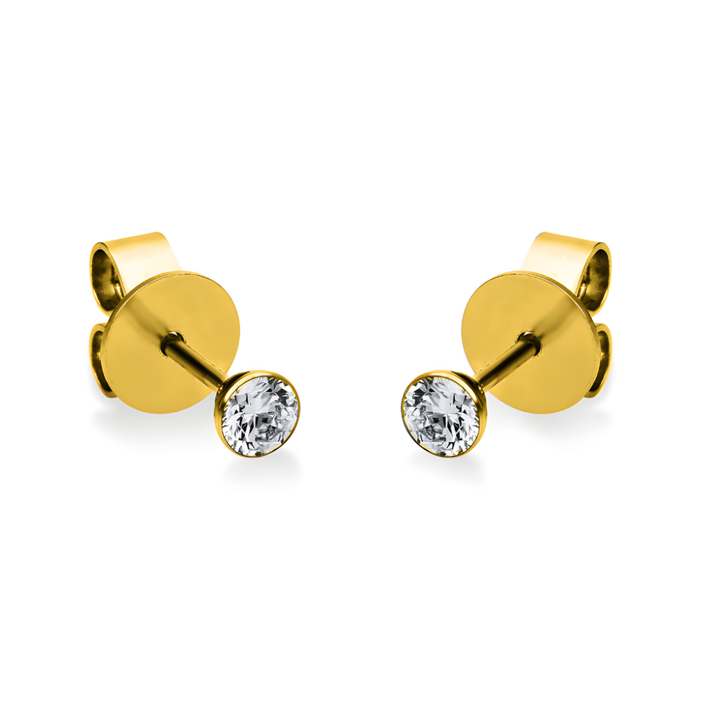 Klasikinio dizaino auksiniai auskarai vinukai su deimantais, kurių bendras svoris yra 0,20 karato. Natūralūs deimantai.