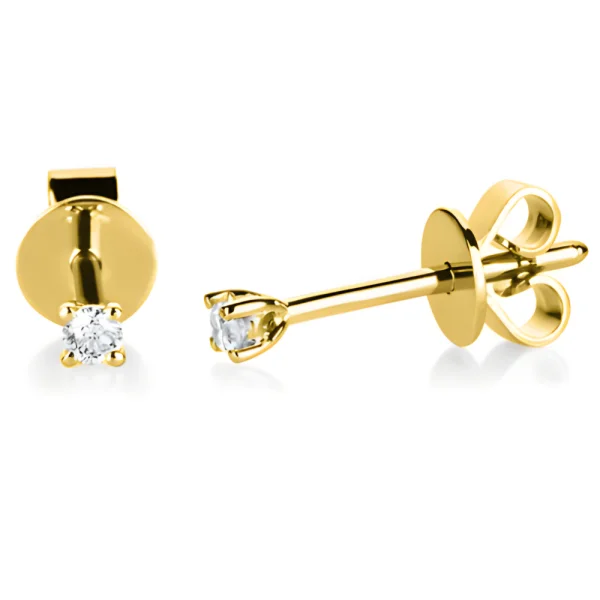 Klasikinio dizaino auksiniai auskarai vinukai su deimantais, kurių bendras svoris yra 0,05 karato. Natūralūs deimantai.