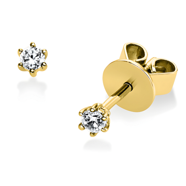 Klasikinio dizaino auksiniai auskarai vinukai su deimantais, kuriu bendras svoris 0,20 karato. Natūralūs deimantai.