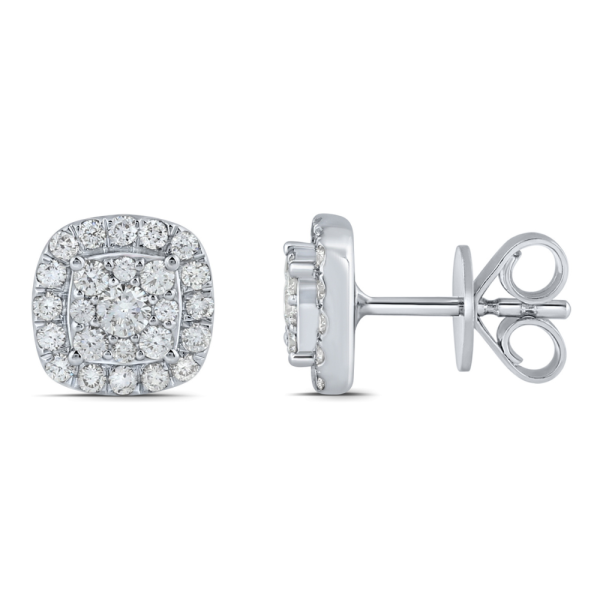 Auskarai vinukai su deimantais – Halo Cushion (0.50 ct)