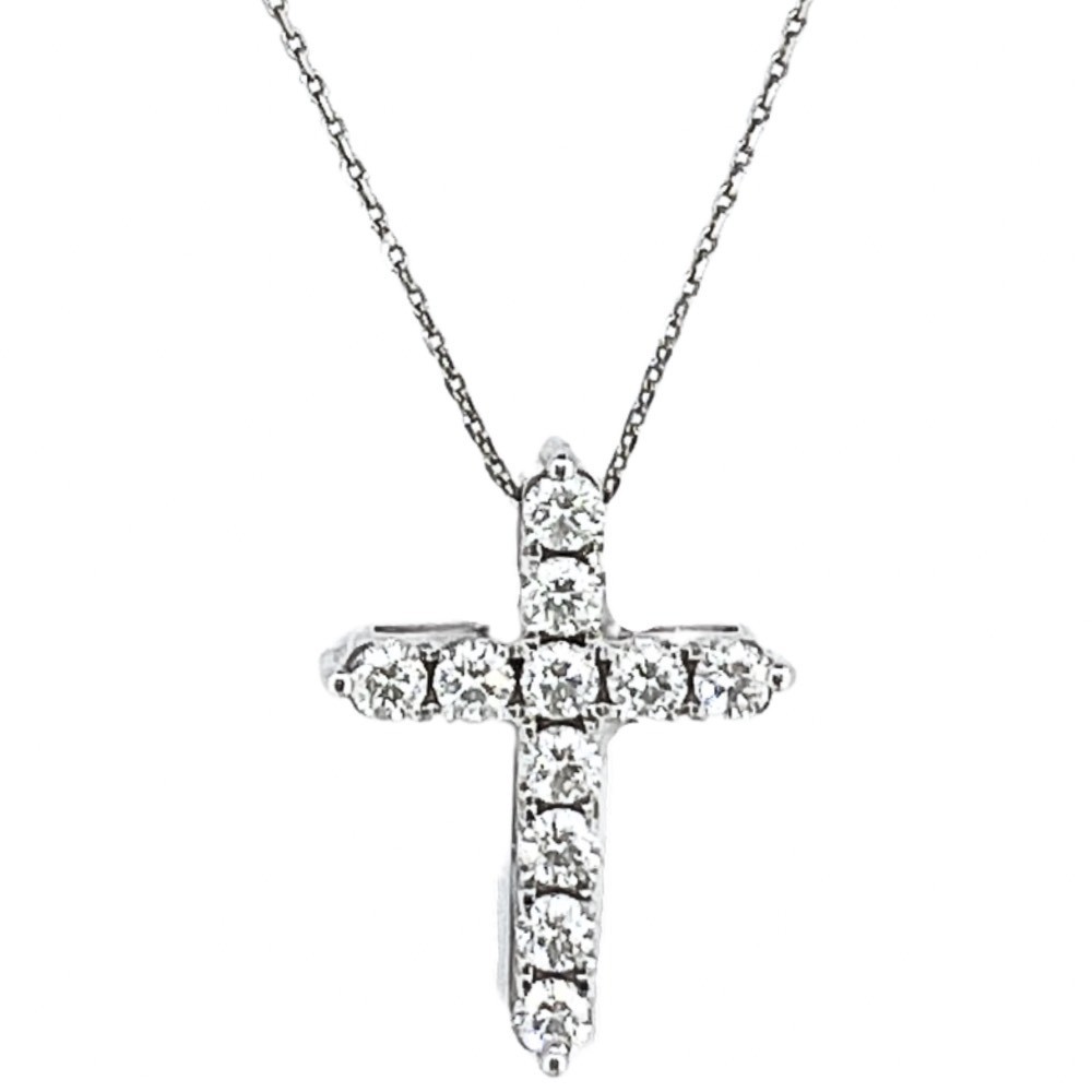 Balto aukso grandinėlė su kryželiu su briliantais – Išskirtinė (1,70 ct)